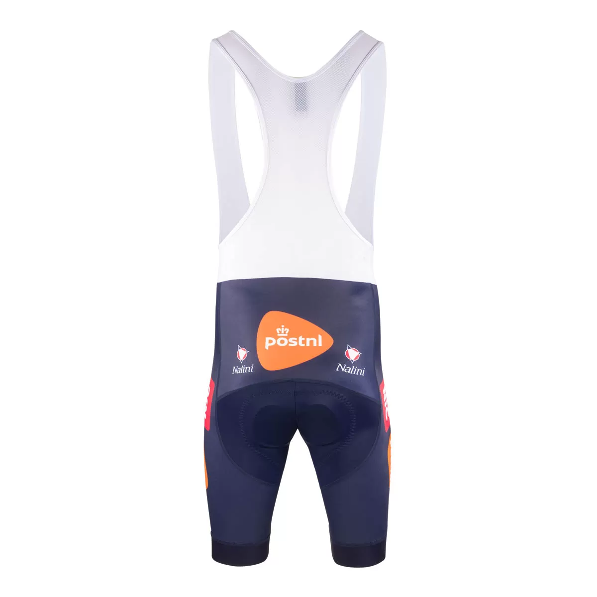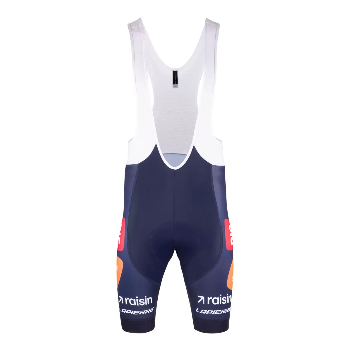 Pantalon ergonomique en Sport et Lycra résistants à l'abrasion, avec bretelles élastiques blanches à l'avant et maille ultra-légère et respirante dans le haut du dos.